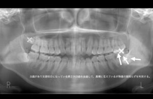 虫歯があり交差咬合になっている第2大臼歯を抜歯して、真横に生えているが無傷の親知らずを利用する。