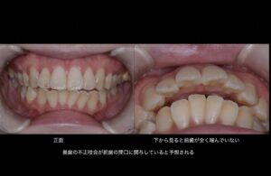 奥歯の不正咬合が前歯の開口に関与していると予想される。