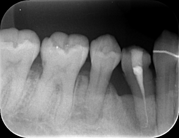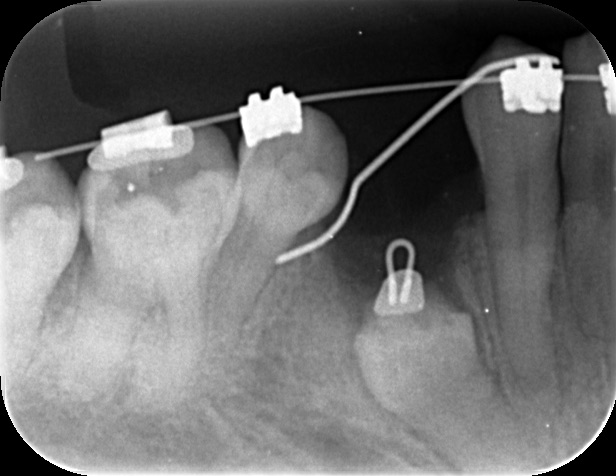 根管処置後、歯槽骨の回復を待つ。この時点では歯の動揺はかなりあり、抜けてしまうんではないかと思うぐらい。